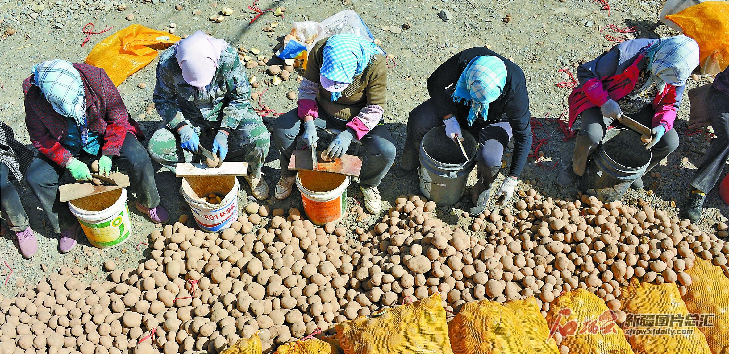 4月27日,巴里坤哈萨克自治县石人子乡农民在处理用于种植的马铃薯。巴里坤实行“合作社+基地+农户”的模式,帮助农民通过马铃薯种植增收致富。 □张建刚摄
