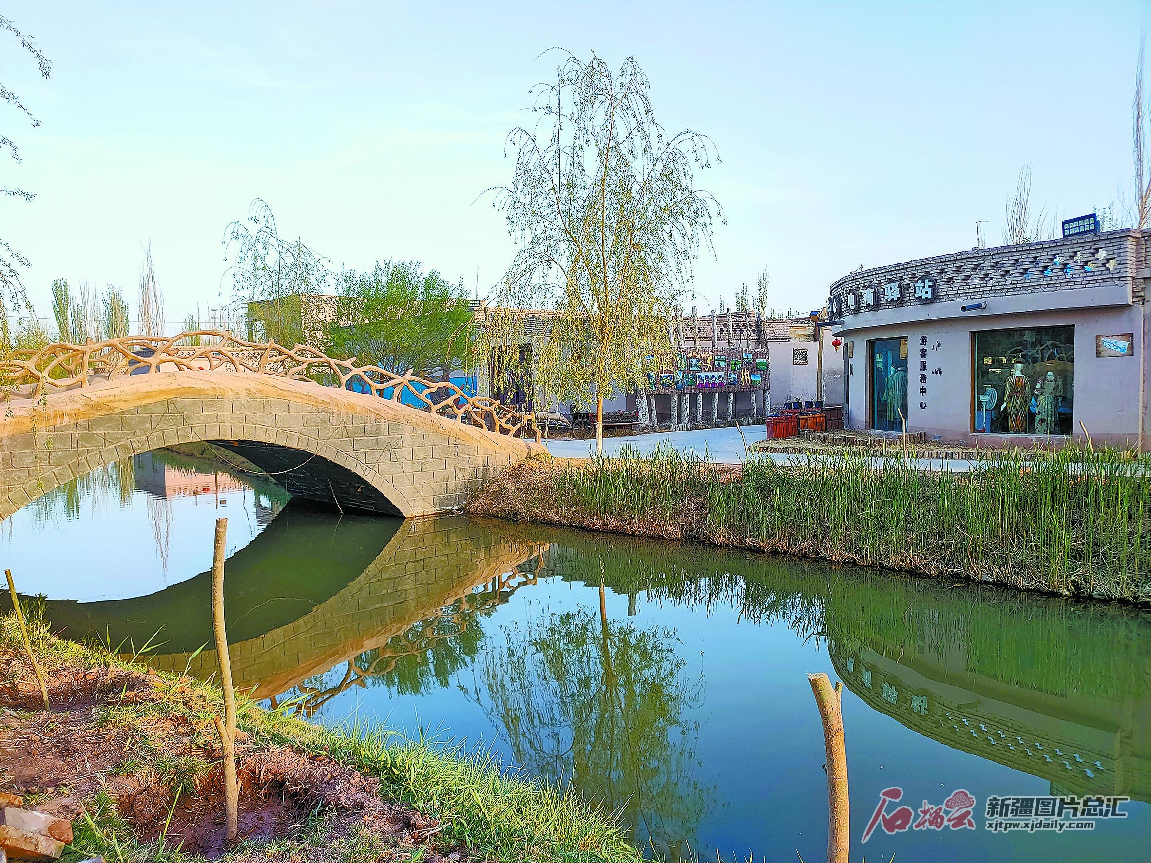 走进尤喀尔克喀库拉村,犹如走进了一个江南水乡,自然水系形成的河流缓缓穿村而过,小河上古色古香的小桥与岸边错落有致的房屋,好一派和谐静谧的田园风光,形成“景在村中、村在景中”的美丽乡村画面。